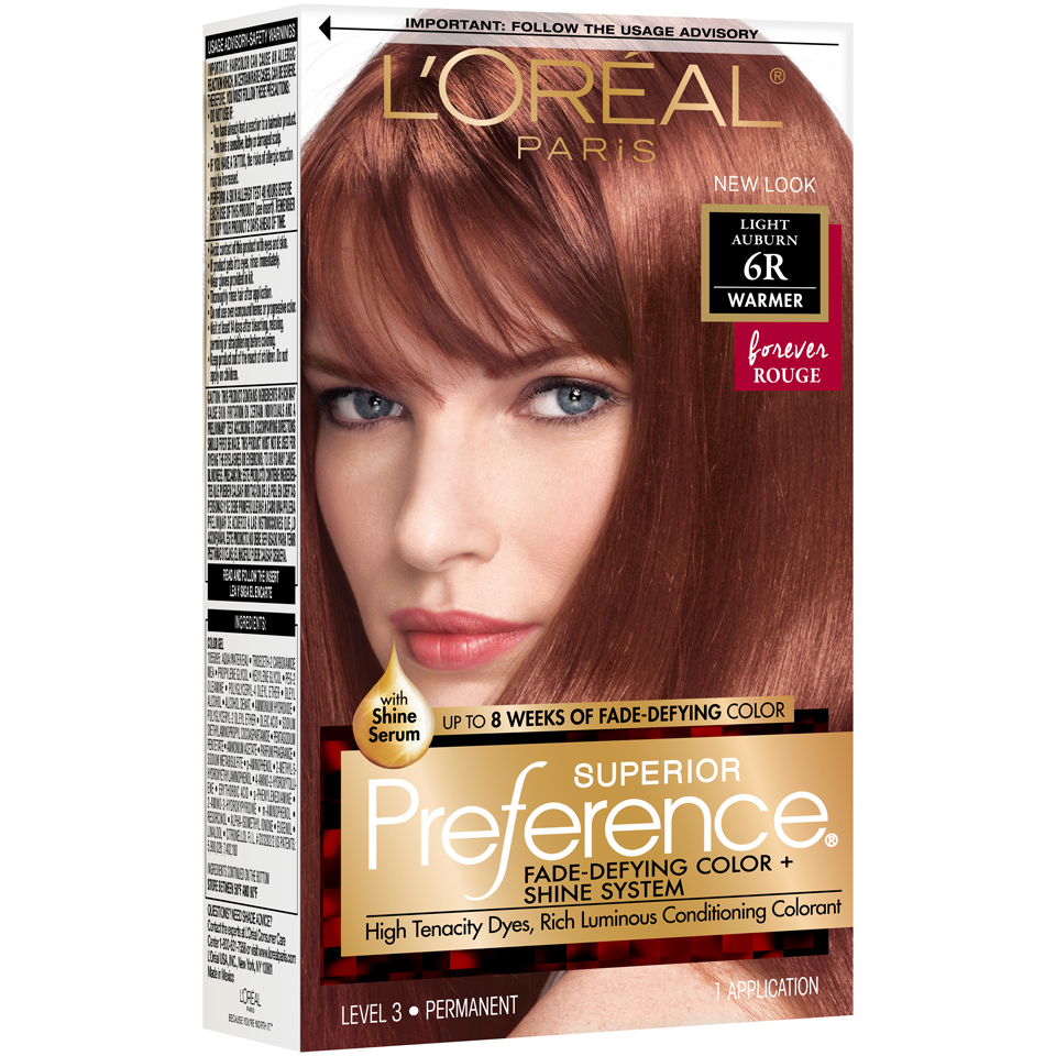L Oreal Paris Superior Preference Fade Defying Shine Permanent Hair Color 6r Light Auburn 1 Kit Walmart Com